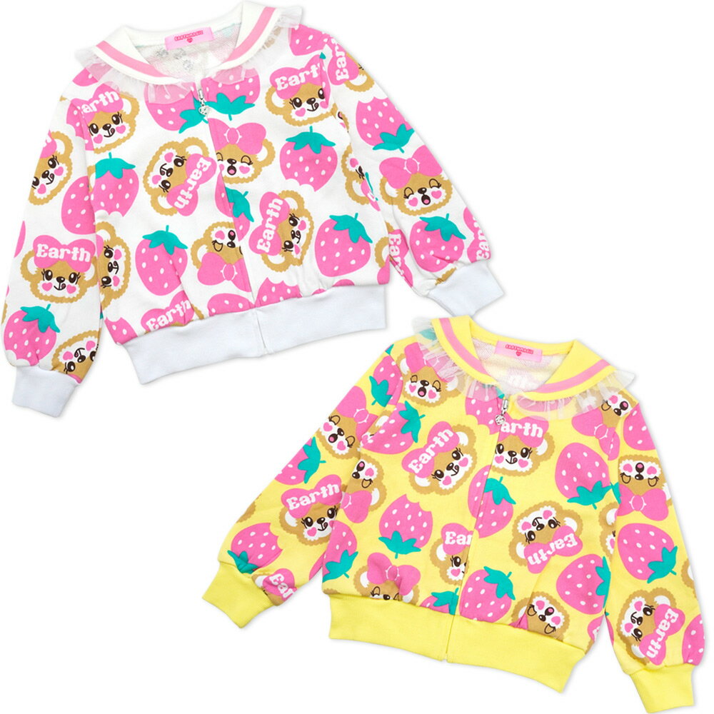 【正規取扱店】EARTHMAGIC【30%OFF】アースマジック 2021秋冬 ストロベリービッグマフィー総柄セーラーカラージップアップジャケット 女児 女の子 子供服 キッズ アウター 100 110 120 130 140 オフシロ 白 クリームイエロー 黄色