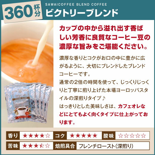 コーヒー ドリップコーヒー ドリップ 福袋 ドリップパック ドリップバッグ 珈琲 個包装 8g 大量 澤井珈琲 ビクトリーブレンド ブレンドフォルテシモ ギガ盛り360杯入り福袋