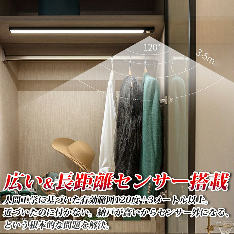 【送料無料】充電式 マグネットLEDセンサーライト 60cm 白色 超薄型 超軽量 おしゃれ 可愛い デスクライト 納戸 納屋 押し入れ 北欧風 調光 明るさ無段階変更 マグネットベース付き 磁石 取付簡単 両面テープ バッテリー内臓 USB充電 スリム コンパクト収納