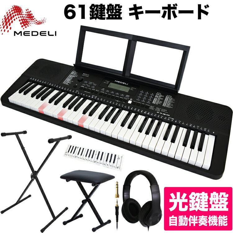 【ポイント5倍!8/23 9:59迄】MEDELI 61鍵盤 キーボード M221L[J] 入門5点セット【M-221LJ KYBSS KB4400 HPCT1 KDC01】【光鍵盤 自動伴奏機能 楽器 演奏 子供 子供用 電子キーボード ピアノ 電子ピアノ キッズ プレゼントに最適 メデリ】【大型】