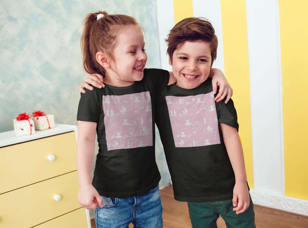 tシャツ キッズ 半袖 黒地 ブラック デザイン 90 100 110 120 130 140 150 Tシャツ ティーシャツ T shirt 004983 ピンク ベビー イラスト